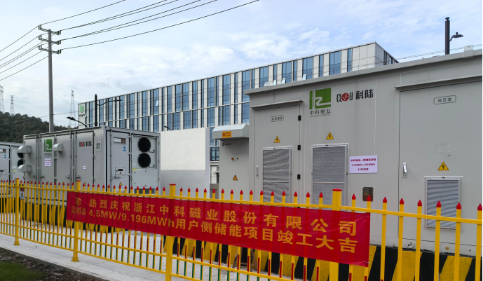 本項目落地于浙江省金華市東陽市浙江中科磁業(yè)廠區(qū)內(nèi),是完全貼合企業(yè)生產(chǎn)用電特性定制的儲能解決方案。項目核心配置為4.5兆瓦(MW)功率、9.196兆瓦時(MWh)容量,采用行業(yè)成熟的鋰電池儲能系統(tǒng)與智能控制技術,可實現(xiàn)毫秒級響應速度,完美適配企業(yè)負荷波動調(diào)節(jié)需求。