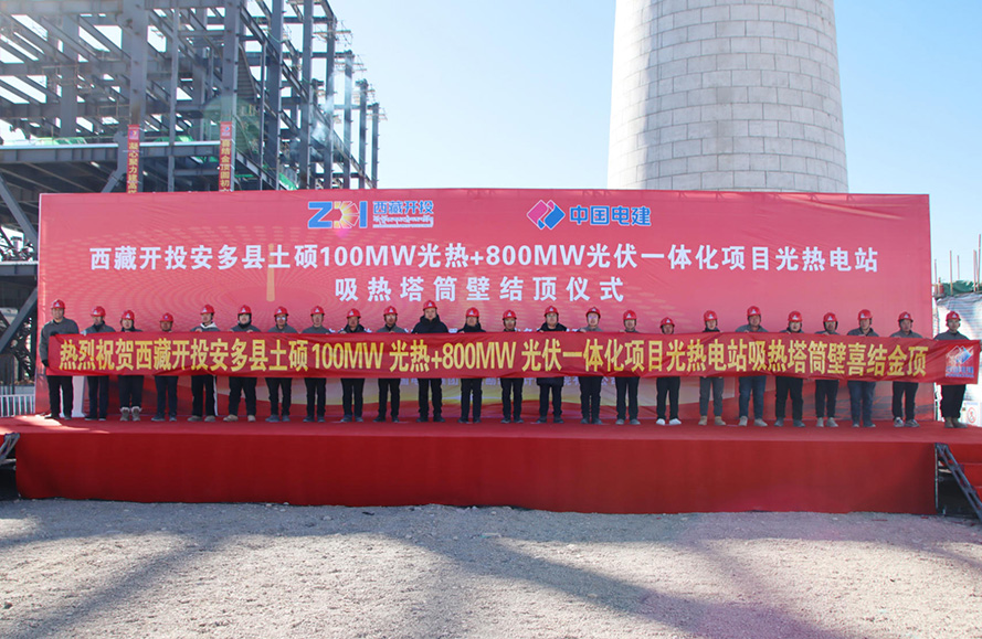 中國儲(chǔ)能網(wǎng)訊:晴空萬里映雪域,捷報(bào)高擎慶封頂。11月15日,由山東電建一公司承建的西藏開投安多縣土碩100MW光熱+800MW光伏一體化項(xiàng)目吸熱塔順利結(jié)頂,標(biāo)志著該項(xiàng)目建設(shè)進(jìn)程邁出堅(jiān)實(shí)一步。