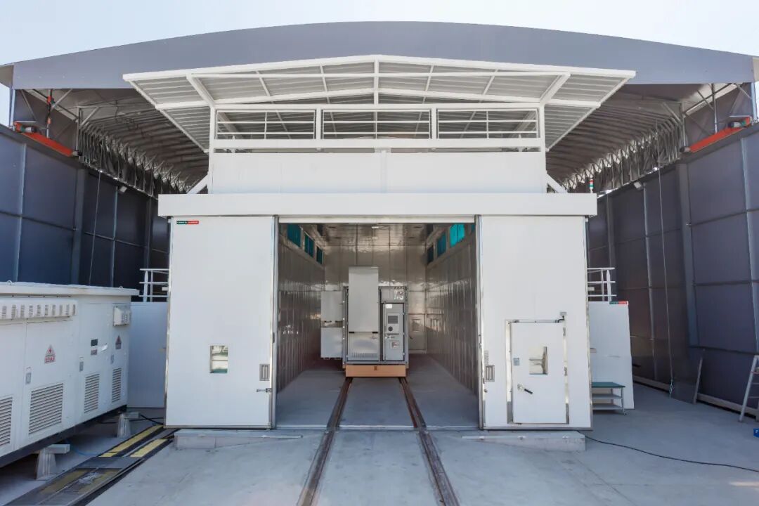 在西側(cè)試驗(yàn)場內(nèi)建立的兩座行業(yè)領(lǐng)先的超大型環(huán)境艙擁有單艙478 m3超大空間,可容納包含直流艙及中壓一體艙在內(nèi)的40ft的子系統(tǒng),在-50℃至+90℃極端溫度與25%~98%RH濕度之間進(jìn)行全環(huán)境模擬測試。天合在業(yè)內(nèi)首次提出滿載條件下環(huán)境艙的溫度規(guī)范,確保產(chǎn)品在環(huán)境艙內(nèi)滿功率運(yùn)行時,艙內(nèi)溫差始終控制在±4℃內(nèi)。