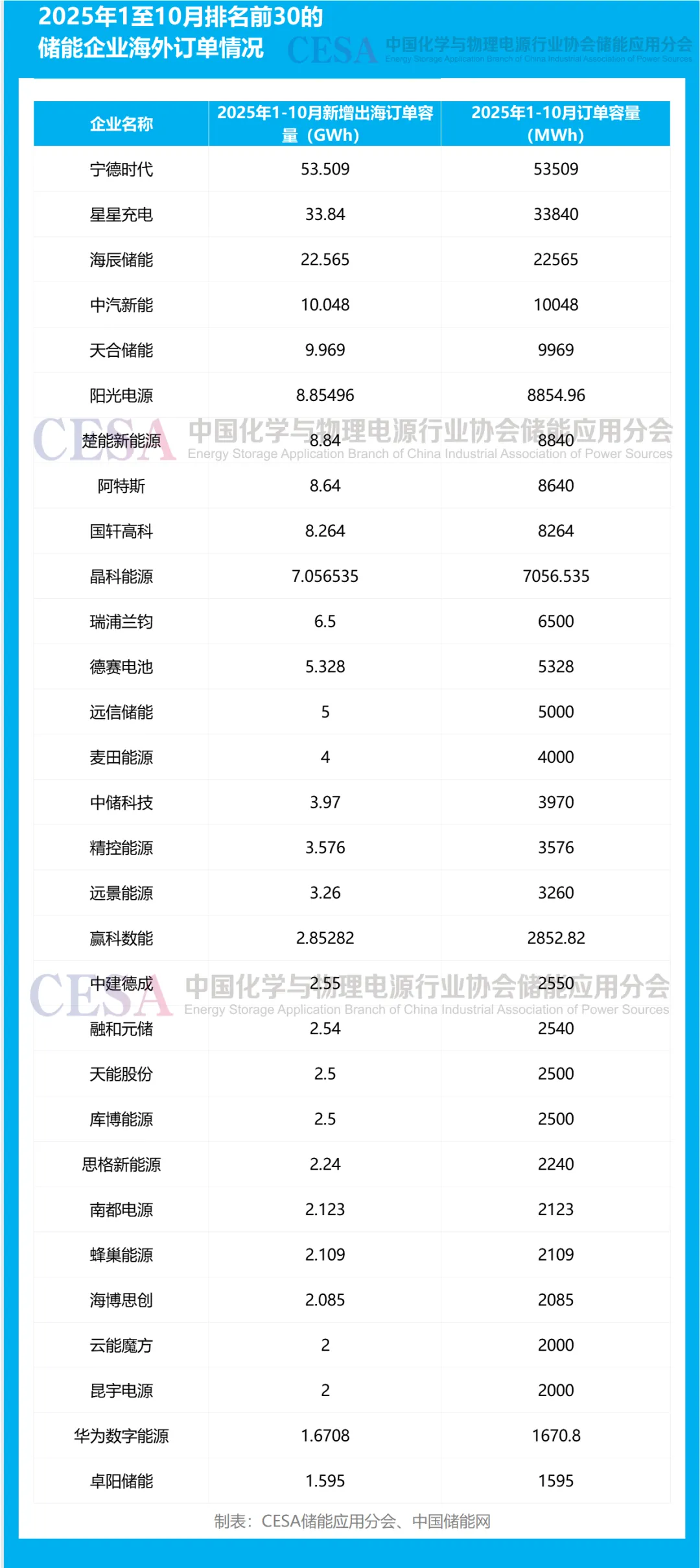海外市場的巨大潛力也給國內(nèi)儲能企業(yè)帶來了可觀的訂單。根據(jù)CESA儲能應(yīng)用分會數(shù)據(jù)庫的不完全統(tǒng)計,2025年1-10月中國企業(yè)新增儲能出海訂單/合作達(dá)267GWh,已遠(yuǎn)超去年全年,同比增長145.6%。
