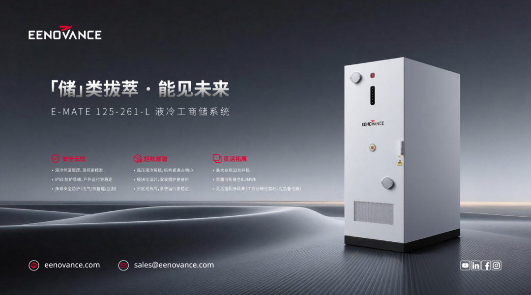 在容量拓展方面,E-MATE 125-261-L 支持系統(tǒng)級并聯(lián),最大支持32臺并機,容量可擴展至 8.3MWh,可根據(jù)項目需求靈活配置,覆蓋工商企業(yè)削峰填谷、光儲直流側(cè)耦合、園區(qū)負載管理等多元場景。同時,儲能變流器(PCS)的最高能量轉(zhuǎn)換效率能達到 98.5%,在保證輸出穩(wěn)定性的同時降低運行成本,為用戶帶來更高的能效收益。