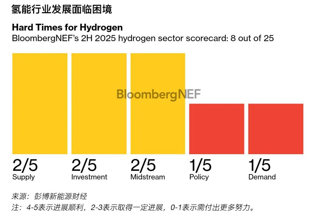 2025年下半年清潔氫行業(yè)的彭博新能源財經(jīng)記分卡得分
