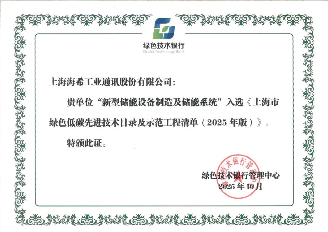 中國儲能網(wǎng)訊:近日,《上海市綠色低碳先進(jìn)技術(shù)目錄及示范工程清單(2025年版)》正式發(fā)布,上海海希工業(yè)通訊股份有限公司(以下簡稱“海希通訊”)自主研發(fā)的“新型儲能設(shè)備制造及儲能系統(tǒng)”成功入選,成為上海市綠色低碳轉(zhuǎn)型的標(biāo)桿推薦技術(shù),標(biāo)志著該系統(tǒng)在技術(shù)創(chuàng)新與低碳實(shí)踐中獲得權(quán)威認(rèn)可。