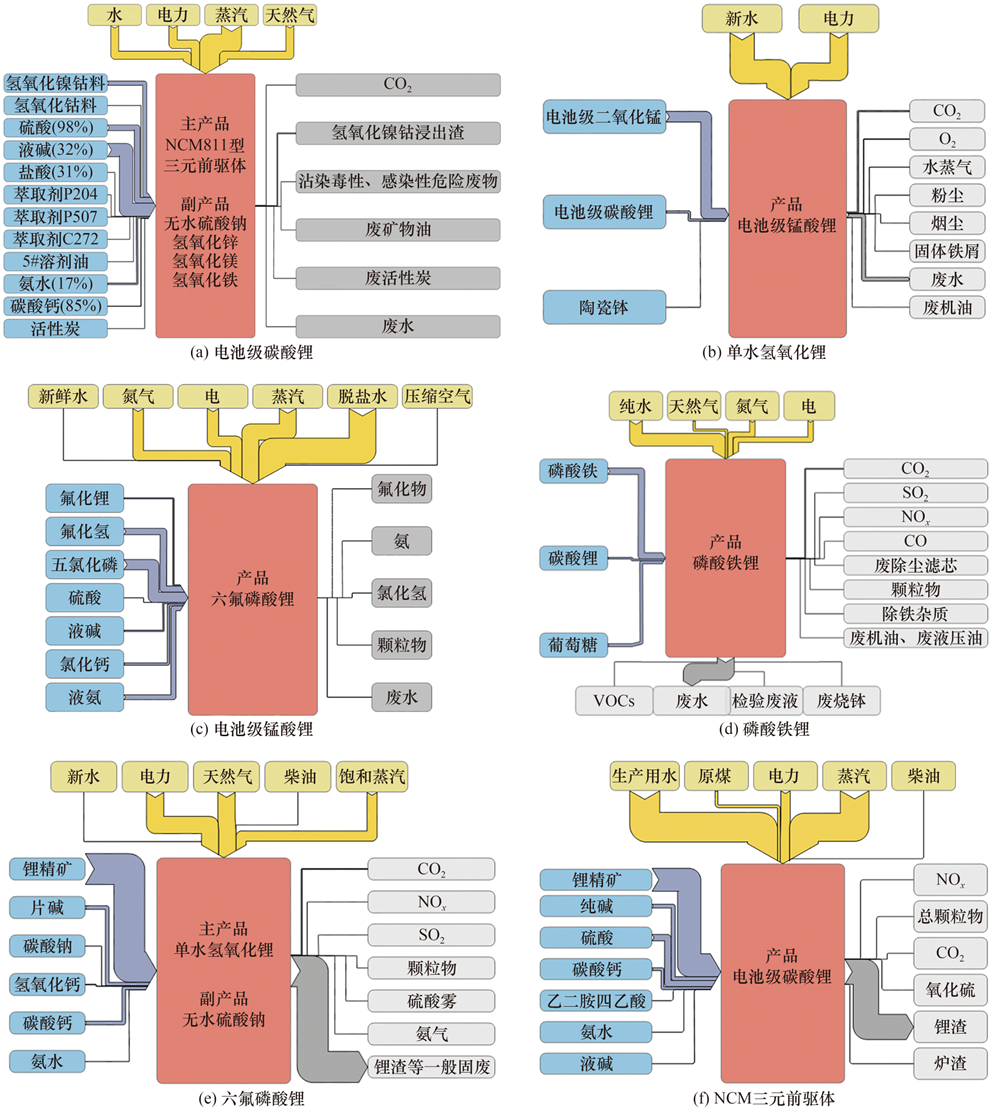 圖5 鋰電池典型原料的部分物質(zhì)流與能量流過程示意