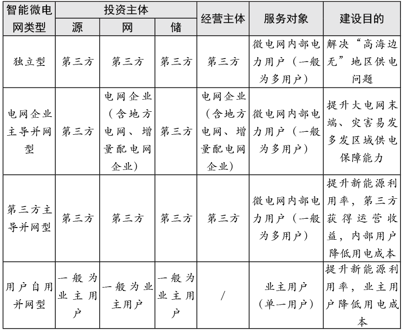 表 智能微電網(wǎng)類型劃分