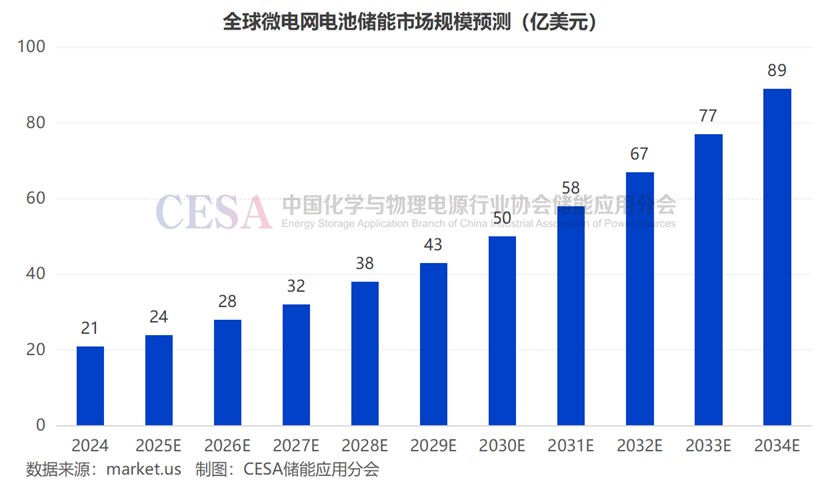 另據(jù)Market.us預(yù)測,全球微電網(wǎng)電池儲能市場將從2024年的21億美元快速增長到2034年的89億美元,2025–2034年CAGR預(yù)計達(dá)到15.6%。2024年,亞太地區(qū)是最大市場,占比超過43.9%,市場規(guī)模接達(dá)9億美元。