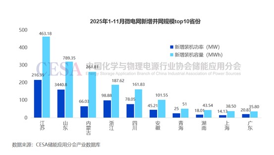 而色達(dá)項目、三江源項目的成功落地并非個例。據(jù)CESA儲能應(yīng)用分會產(chǎn)業(yè)數(shù)據(jù)庫統(tǒng)計,2025年1-11月,國內(nèi)共有255個微電網(wǎng)項目并網(wǎng),新增裝機總規(guī)模為800.17MW/1781.65MWh,同比增長266.46(功率)/290.53%(容量)。