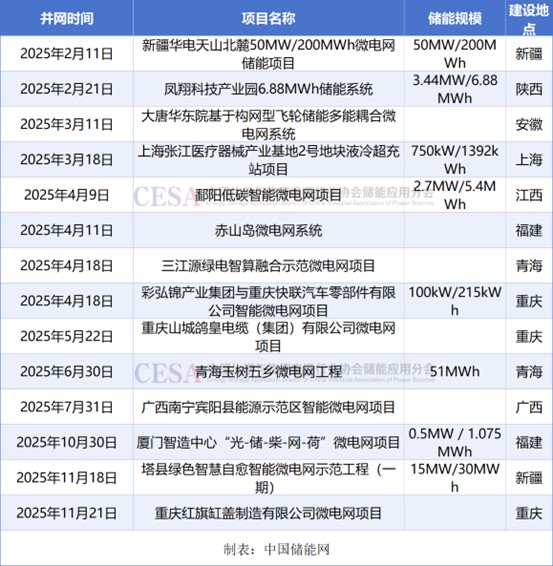 表 2025年1-11月國內(nèi)部分微電網(wǎng)并網(wǎng)項目統(tǒng)計