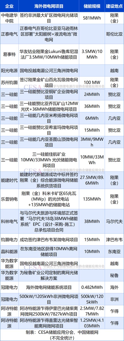 出海方面,自2025年以來,中國企業(yè)在海外新增簽約/開工/并網(wǎng)的微電網(wǎng)儲能規(guī)模已超過1GWh。其中,三一硅能在非洲一連并網(wǎng)多個微電網(wǎng)項目甚為搶眼。