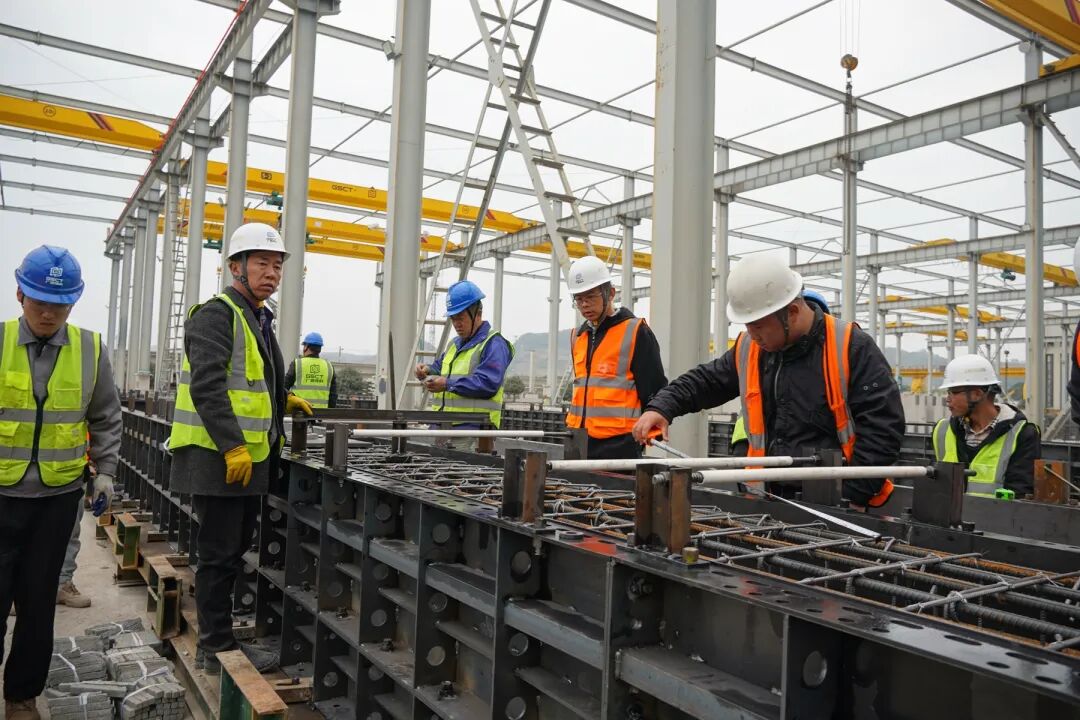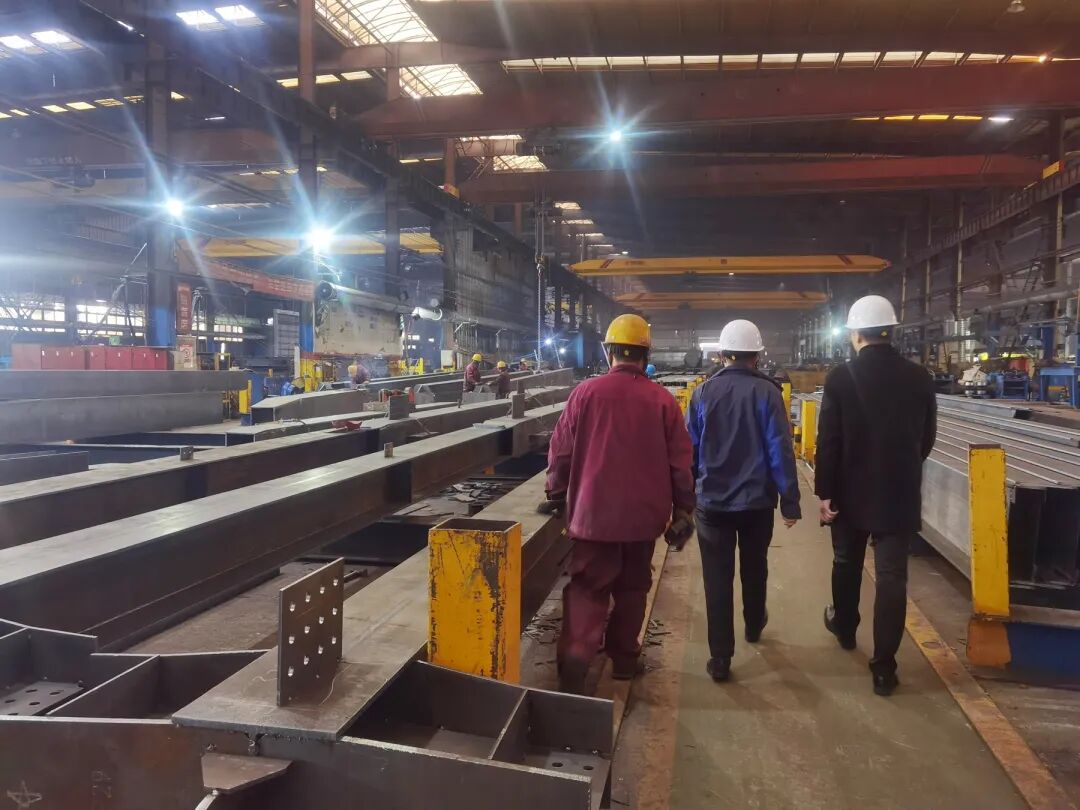 預(yù)制柱穩(wěn)穩(wěn)扎根的同時,鋼結(jié)構(gòu)主體施工的“糧草先行”早已鋪展開來,為確保后續(xù)大面積廠房施工無縫銜接,楚能新能源二期項目服務(wù)工作協(xié)調(diào)機(jī)制辦公室未雨綢繆。此前,機(jī)制辦成員會同區(qū)經(jīng)信商務(wù)局、龍泉鎮(zhèn)與中建三局,專程赴安徽合肥開展供應(yīng)鏈調(diào)研,實(shí)地走訪鴻路鋼構(gòu)、偉宏鋼構(gòu)兩家龍頭企業(yè)。在鴻路鋼構(gòu)生產(chǎn)車間,機(jī)器轟鳴不絕于耳,十余條生產(chǎn)線24小時輪班作業(yè),原材料庫存充足率達(dá)120%;偉宏鋼構(gòu)則專門配備30名質(zhì)檢人員,對焊縫精度實(shí)行全程追溯。