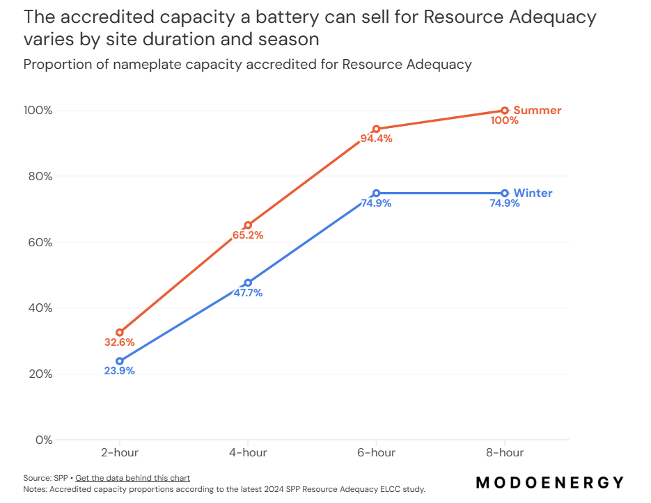電池被允許出售其銘牌容量的24%至100%,在夏季資源充足性季節(jié),6小時(shí)及以上時(shí)長的電池可獲得更高比例。