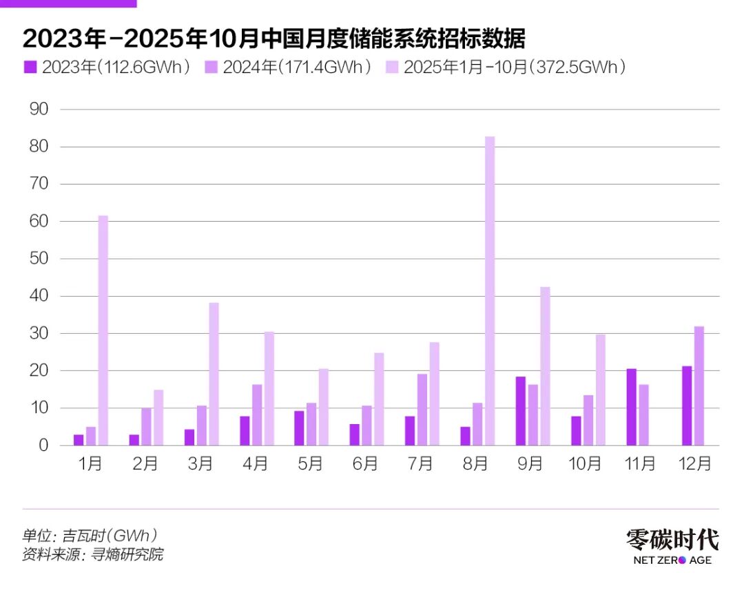最新的儲能系統(tǒng)和EPC招標數(shù)據(jù)統(tǒng)計,2025年下半年強制配儲政策正式退出之后,市場并未遇冷,反而呈現(xiàn)出爆發(fā)式增長。尤其是進入8月后,單月招標規(guī)模創(chuàng)下歷史新高,遠超往年同期水平。這種井噴式的數(shù)據(jù)表明,市場對于儲能的需求已經(jīng)不再來自政策強制,而是由內(nèi)生動力所驅(qū)動。