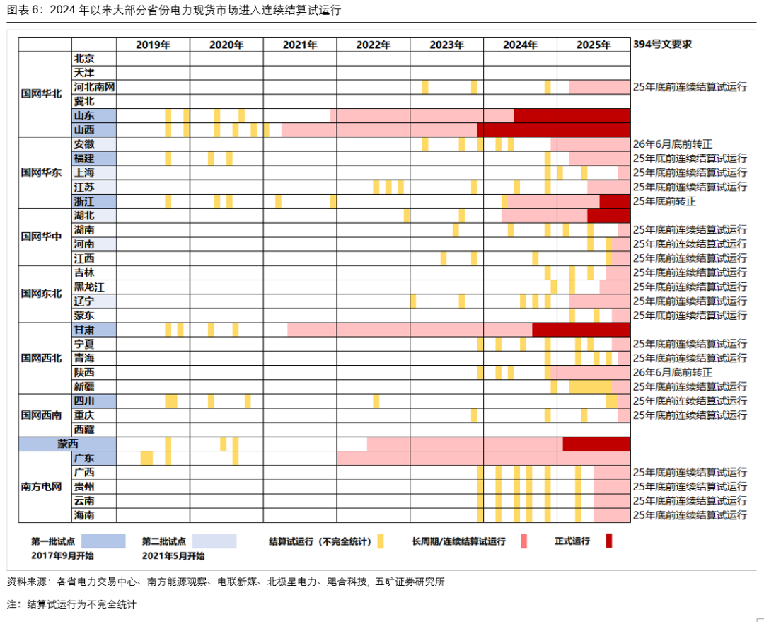 1) 電力現(xiàn)貨市場大范圍鋪開,24年初僅5個省份連續(xù)運(yùn)行,截至25年11月則為28個省份連續(xù)運(yùn)行。