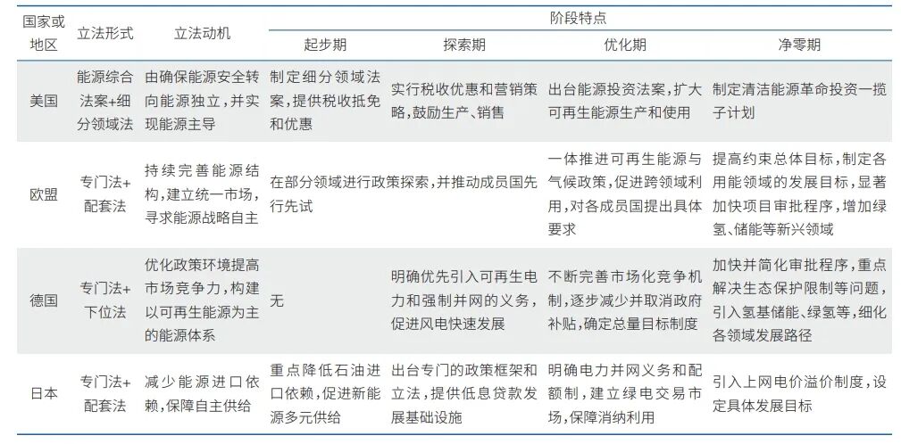 各國(guó)可再生能源立法與保障能源安全緊密相連,緊扣立法工作大致分為4個(gè)階段。