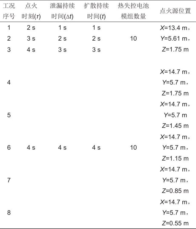 磷酸鐵鋰電池發(fā)生熱失控后,噴射的電解液蒸氣會與空氣混合形成爆炸性氣體。參考Qin等研究成果,本工作模擬以9.31% CH4、9.8% C2H4、38.86% H2、11.7% CO、30.33% CO2(均為體積分?jǐn)?shù))作為熱失控可燃?xì)怏w進(jìn)行泄漏源設(shè)置,如圖2所示。