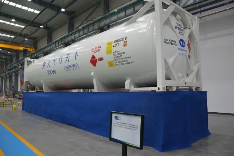 聚焦氫能產(chǎn)業(yè)鏈中游儲運環(huán)節(jié),杭氧自主研發(fā)的大型液氫儲罐吸引記者注意。據(jù)介紹,該液氫儲罐為江氧多式聯(lián)運液氫罐箱,采用40英尺標準集裝箱框架,主要用于液氫的海上運輸、公路運輸以及終端的液氫存儲。其絕熱性能指標達到了國內(nèi)領(lǐng)先、國際先進水平,無損存儲時間最長可達50余天,為未來實現(xiàn)液氫全球貿(mào)易提供了堅實保障。