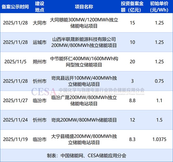 表 2025年11月山西新增備案長(zhǎng)時(shí)儲(chǔ)能項(xiàng)目