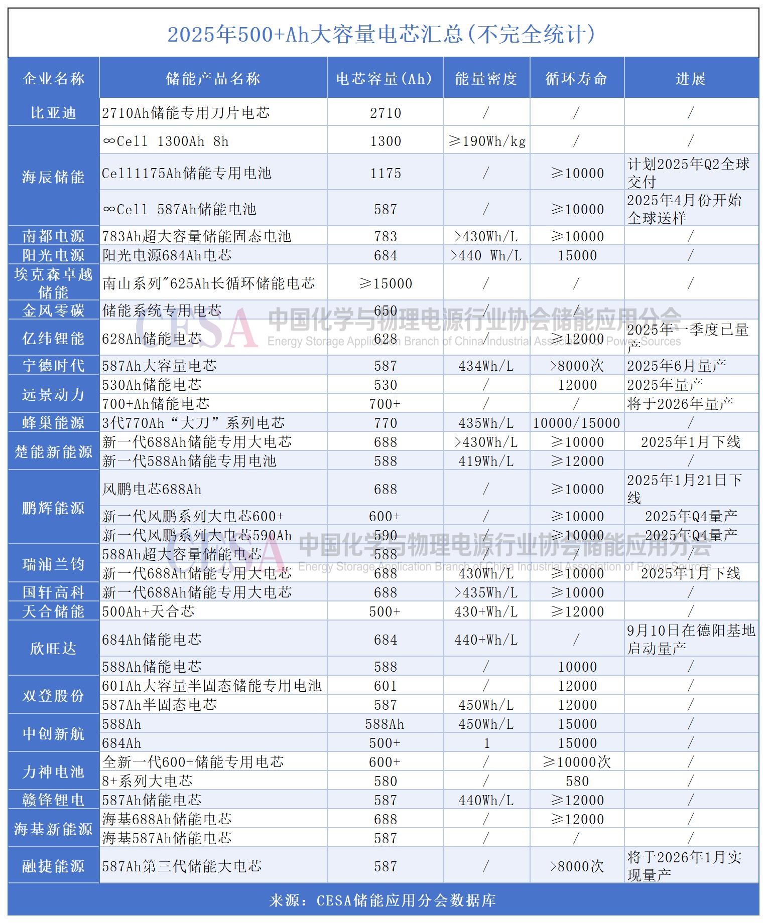從產(chǎn)業(yè)鏈跟進(jìn)角度看,除了,寧德時(shí)代、海辰儲(chǔ)能,?;鶅?chǔ)能、鵬程無限、贛鋒鋰電等鋰電企業(yè)也推出自有587Ah產(chǎn)品。