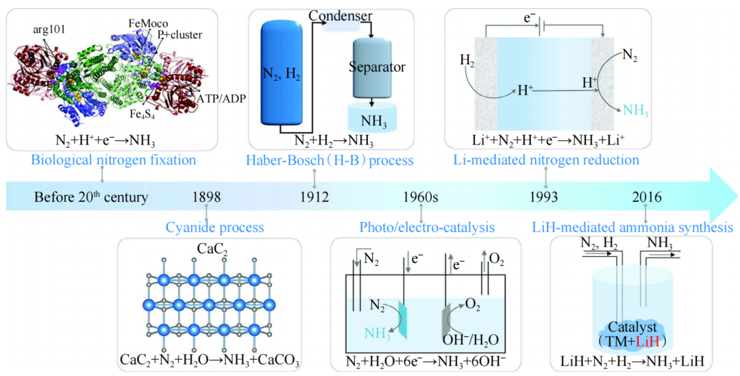 NH3是合成化肥、藥品、精細(xì)化學(xué)品和塑料的重要化工商品,是現(xiàn)代文明的基石。NH3具有高的重量氫密度(17.8%),與甲醇相當(dāng)?shù)母吣芰棵芏龋约耙子谝夯?、便于?chǔ)存和運(yùn)輸?shù)扔欣匦?,因此,NH3作為直接燃料和氫載體具有巨大的潛力。其中氮還原為NH3是實(shí)現(xiàn)可持續(xù)發(fā)展的關(guān)鍵途徑。
