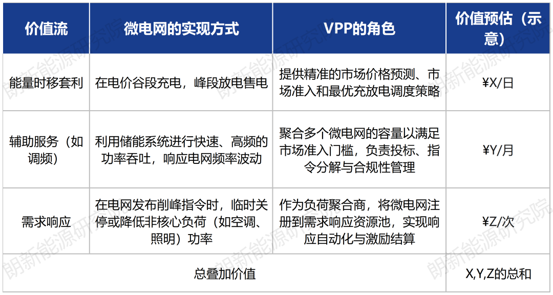 為了更直觀地展示VPP如何為微電網(wǎng)解鎖多元化的價(jià)值,下表總結(jié)了一個(gè)VPP管理的微電網(wǎng)所能獲得的“價(jià)值棧”: