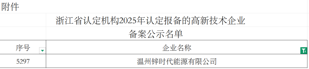 中國(guó)儲(chǔ)能網(wǎng)訊:近日,全國(guó)高新技術(shù)企業(yè)認(rèn)定管理工作領(lǐng)導(dǎo)小組辦公室正式公布2025年國(guó)家高新技術(shù)企業(yè)名單,溫州鋅時(shí)代能源有限公司憑借在鋅溴液流電池領(lǐng)域的持續(xù)創(chuàng)新實(shí)力與扎實(shí)的科技成果轉(zhuǎn)化成效,成功通過認(rèn)定!