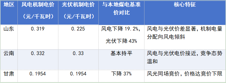 甘肅風(fēng)光同場競爭,價格觸底。風(fēng)電、光伏采用同場競價模式,市場競爭充分,最終機(jī)制電價降至競價下限0.1954元/千瓦時,反映出區(qū)域新能源項目供給與消納空間的供需格局。