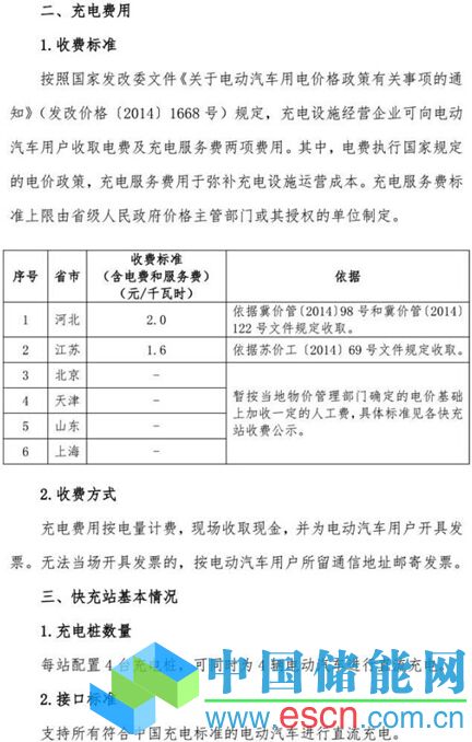 中國儲能網(wǎng)訊:日前,國家電網(wǎng)發(fā)布了高速公路快充網(wǎng)絡(luò)服務(wù)指南。其中,國家電網(wǎng)將為在高速公路上使用電動車的用戶提供電話預(yù)約、人工服務(wù)的充電方式;另外,充電的收費(fèi)方式及收費(fèi)標(biāo)準(zhǔn)和京滬高速快充站站點(diǎn)分布等信息也一同發(fā)布,詳情請見以下國家電網(wǎng)官方網(wǎng)站網(wǎng)頁截圖:(注:目前京滬高速充電樁沒有正式投入運(yùn)營,而是試運(yùn)行階段,需要充電的話需要提前打電話通知工作人員,需要工作人員協(xié)助使用,大家出行前一定注意和提前了解。)