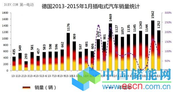 2015年伊始,插電式汽車在德國(guó)再續(xù)2014年末的強(qiáng)勁熱銷風(fēng),1月份新注冊(cè)1252輛,同比大增84%,市場(chǎng)占比也創(chuàng)出0.6%的歷史新高。