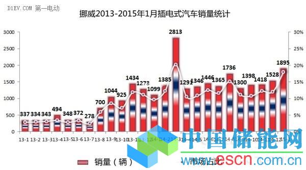 挪威再次做到了!1月份的電動(dòng)車銷量創(chuàng)歷史第二高水平,新車注冊(cè)達(dá)1895輛,同比飆升72%,市場(chǎng)份額也增至18%。如果再加上至少超過(guò)300輛插電式混合動(dòng)力車,所有插電式汽車的市場(chǎng)份額更達(dá)到21%。