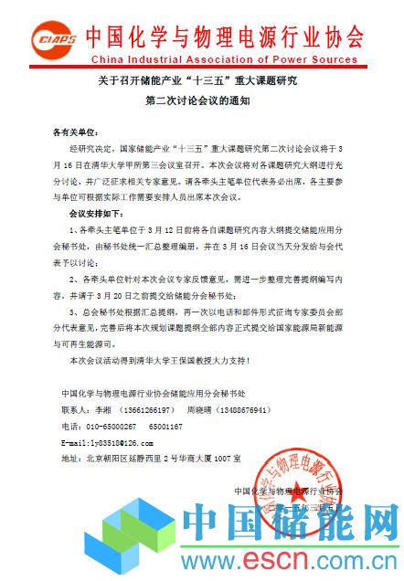 關(guān)于召開(kāi)儲(chǔ)能產(chǎn)業(yè)“十三五”重大課題研究第二次討論會(huì)議的通知