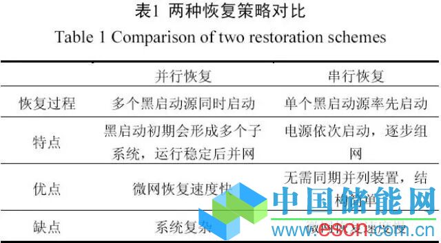 所謂微網(wǎng)黑啟動(Black Start),指在整個微網(wǎng)因外部或內(nèi)部故障停運(yùn)進(jìn)入全黑狀態(tài)后,不依靠大電網(wǎng)或其他微網(wǎng)的幫助,僅通過啟動微網(wǎng)內(nèi)部具有黑啟動能力的微源,進(jìn)而帶動微網(wǎng)內(nèi)無黑啟動能力的微源,逐步擴(kuò)大系統(tǒng)的恢復(fù)范圍,最終實(shí)現(xiàn)整個微網(wǎng)的重新啟動。