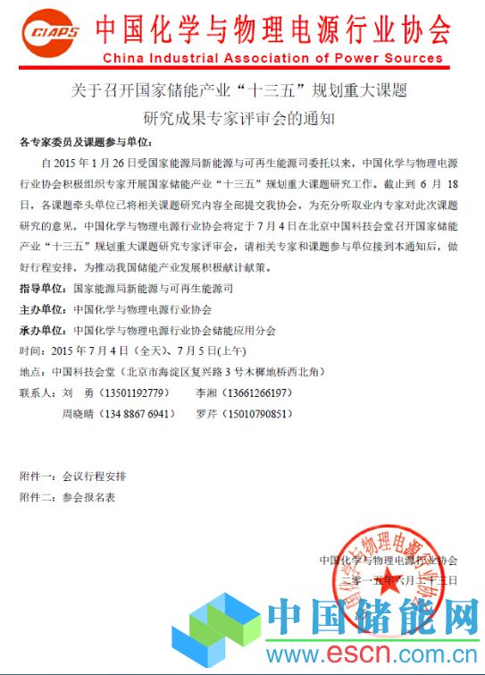 關(guān)于召開國家儲能產(chǎn)業(yè)“十三五”規(guī)劃重大課題研究成果專家評審會的通知