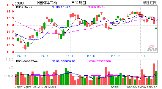 8月21日,中海油公布了2012年半年報(bào),由于業(yè)績下降近兩成,遜于部分券商機(jī)構(gòu)的預(yù)測,導(dǎo)致昨日多家券商紛紛下調(diào)對(duì)中海油的評(píng)級(jí)。受此影響,其股價(jià)因此下跌1.72%。