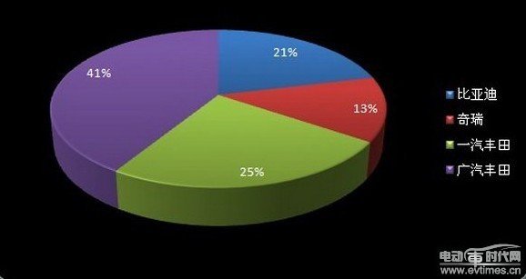 2012年8月國內(nèi)主要新能源汽車廠商銷售比例圖 數(shù)據(jù)來源:中國汽車工業(yè)協(xié)會