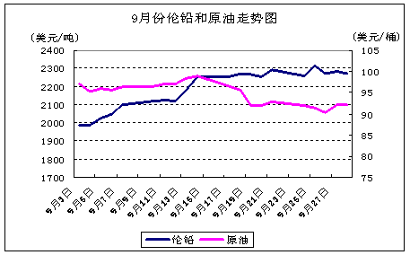 2012年9月份,倫鉛一路上揚(yáng),截至本月收盤較上月上漲306美元,漲幅15.58%,最高觸及2322美元,最低1956美元,本月報(bào)收2270美元,是近一年來最大的單月漲幅。