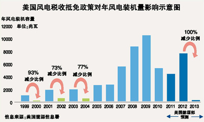 在風能生產(chǎn)稅收抵免政策和一些州出臺的可再生能源發(fā)電比例政策刺激下,美國總體環(huán)境還是有利于風電發(fā)展的。但是一旦稅收抵免政策失效,風電很難吸引到新的投資者。而風電項目所需投資很大,并且需要很長時間才能收回投資。