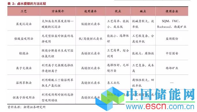 . 表1中列出的低鎂含量的Atacama、Hombre Muerto鹽湖正在利用這個方法開采,相關(guān)企業(yè)包括SQM、FMC、Rockwood,國內(nèi)西藏礦業(yè)也是采取該方法,但因環(huán)境限制尚未規(guī)?;慨a(chǎn)。