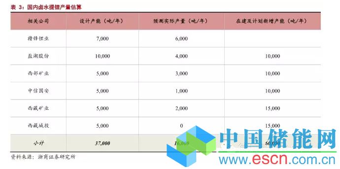 . 截止目前,我們預(yù)測國內(nèi)鹵水提鋰實際產(chǎn)量16000噸/年(設(shè)計產(chǎn)能37000噸/年),如表3所示,低于礦石提鋰的實際產(chǎn)量,主要因為當(dāng)前國內(nèi)鹵水資源難以規(guī)模化開采,呈現(xiàn)產(chǎn)能無法完全釋放的現(xiàn)狀,但未來新增產(chǎn)能將高于礦石提鋰的新增產(chǎn)能,大約為60000噸/年。