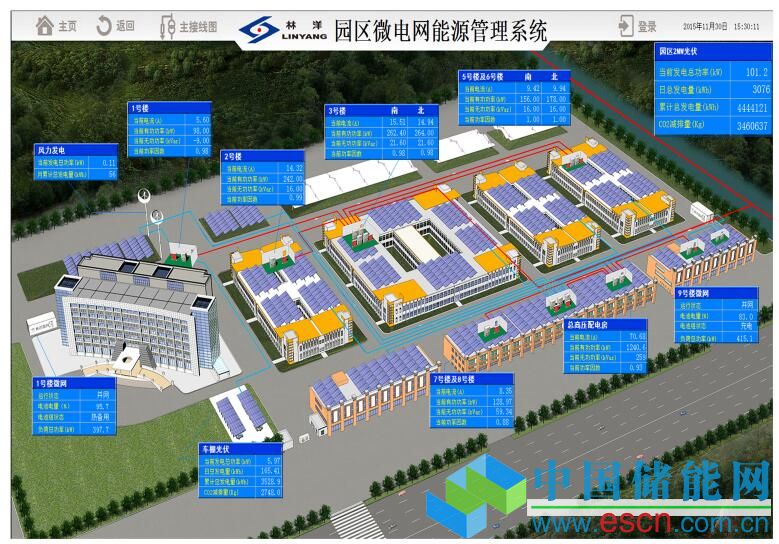 系統(tǒng)可以接受外電網(wǎng)命令,實(shí)時控制并網(wǎng)點(diǎn)的頻率、電壓和功率,作為電網(wǎng)的備用容量,也可以根據(jù)電網(wǎng)要求保持與大電網(wǎng)的協(xié)調(diào)統(tǒng)一。微電網(wǎng)能源管理系統(tǒng)基于預(yù)測數(shù)據(jù)和分布式控制系統(tǒng),實(shí)時調(diào)整微電網(wǎng)的控制策略和控制目標(biāo),并結(jié)合需求側(cè)響應(yīng)為林洋總部園區(qū)提供清潔、精準(zhǔn)的能源供給。