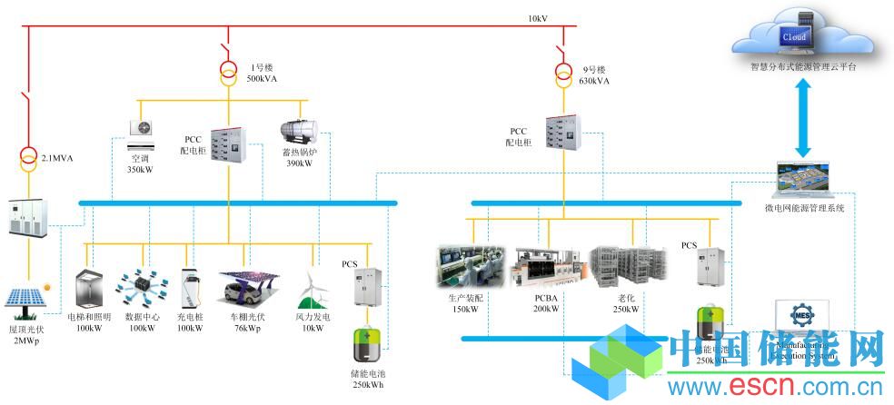 微電網(wǎng)能源管理系統(tǒng)基于分布式智能控制技術(shù),可根據(jù)園區(qū)負(fù)載特性、電池狀態(tài)、光伏及風(fēng)力發(fā)電情況、生產(chǎn)信息等,自動協(xié)調(diào)儲能系統(tǒng)工作。