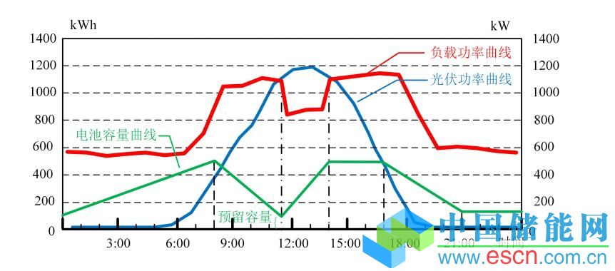 園區(qū)現(xiàn)有的2MWp的屋頂光伏,在光照較好時,發(fā)電量基本可以滿足園區(qū)的正常生產(chǎn)和辦公用電,但在中午休息時,園區(qū)負(fù)荷較低,光伏所發(fā)電量無法有效利用。儲能系統(tǒng)在負(fù)載較低的時候充電,在負(fù)載高峰時放電,提高太陽能的利用率;