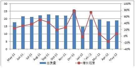第二個(gè)原因,由于三元材料的電壓平臺(tái)低,使得鎳鈷錳鋰電池大部分在筆記本電腦中使用,少部分用在手機(jī)中。根據(jù)高工鋰電產(chǎn)業(yè)研究所(GBII)數(shù)據(jù)整理顯示,2012年1~5月份我國(guó)筆記本電腦出貨量為9171萬臺(tái),同比增長(zhǎng)7.90%,2011年同期出貨量增長(zhǎng)速度為17.68%;特別是剔除春節(jié)因素后的3月份同比增長(zhǎng)5.67%,4月份同比下滑16.27%,5月份同比增長(zhǎng)7.85%(圖3)。筆記本電腦產(chǎn)量增長(zhǎng)速度的大幅下降,自然而然會(huì)壓制三元材料產(chǎn)量的增長(zhǎng)。