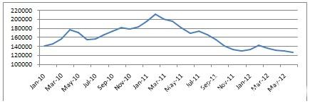第一個(gè)原因,鈷酸鋰2012年上半年價(jià)格跌破20萬元/噸(圖2),這種價(jià)位使得數(shù)碼電池對(duì)正極材料的價(jià)格敏感性下降,尤其是隨著鈷酸鋰價(jià)格逐步下降,部分鋰電池廠家改變?cè)瓉碛?jì)劃轉(zhuǎn)而采購(gòu)鈷酸鋰作為正極材料。面對(duì)這種情況,一些三元廠家也開始生產(chǎn)三元材料摻鈷酸鋰的產(chǎn)品,如今年寧波金和的產(chǎn)量增長(zhǎng)動(dòng)力主要來自于ATL三元材料摻鈷酸鋰的訂單;這種產(chǎn)品的主要競(jìng)爭(zhēng)力在于很好地解決了三元材料原來存在壓實(shí)密度低的問題,但是成本并沒有提升很多。