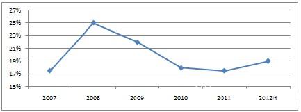 根據(jù)高工鋰電產(chǎn)業(yè)研究所(GBII)調(diào)研結(jié)果顯示,2012年上半年三元材料的毛利率為19%,比2011年微升1.5個(gè)百分點(diǎn),毛利率上升的原因主要是鎳價(jià)同比下降20%,前驅(qū)體的價(jià)格降幅也在20%左右,三元材料成品價(jià)格的降幅15%左右(圖7)。我國(guó)三元材料行業(yè)的盈利能力取決于鎳價(jià)走勢(shì),一旦鎳價(jià)往上走,很有可能面臨全行業(yè)虧損的局面。