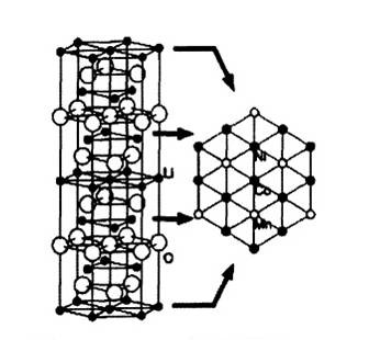 其中只有Ni和Co具有電化學(xué)活性,在充放電的過(guò)程中能夠貢獻(xiàn)容量。而Ni在材料中主要的作用就是提高材料的容量,Ni2+/Ni3+,Ni3+/Ni4+都可以為材料提高容量,但是由于Ni2+離子與鋰離子半徑接近,因此極容易進(jìn)入到鋰層,從而造成容量的損失。Co可以減少Ni離子進(jìn)入到鋰層,從而達(dá)到穩(wěn)定結(jié)構(gòu),同時(shí)Co3+/Co4+也能夠?yàn)椴牧咸峁┤萘俊6鳤l的加入主要是為了穩(wěn)定晶格結(jié)構(gòu),避免材料在充放電過(guò)程中發(fā)生結(jié)構(gòu)塌陷。