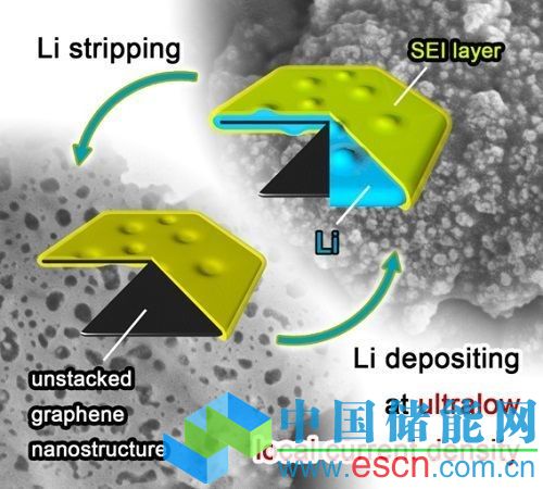 “我們發(fā)現(xiàn),藉由大量減少局部電流密度,就能有效抑制鋰枝晶的生長(zhǎng)。根據(jù)這樣的概念,我們采用具有超高比表面積的非堆棧石墨烯材料,打造出納米結(jié)構(gòu)的陽極。結(jié) 果顯示這是一種十分有效的方法,”清華大學(xué)化學(xué)工程博士研究生兼該研究的主要作者Rui Zhang解釋,“此外,我們采用雙鹽電解液,取得更穩(wěn)定且更靈活的固態(tài)電解質(zhì)接口,以避免鋰金屬與電解液進(jìn)一步發(fā)生反應(yīng)。”
