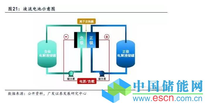利用正負(fù)極電解液分開,各自循環(huán)的一種高性能蓄電池。電池的功率和能量是不相關(guān)的,儲(chǔ)存的能量取決于儲(chǔ)存罐的大小,因而可以儲(chǔ)存長達(dá)數(shù)小時(shí)至數(shù)天的能量,容量可達(dá)MW級(jí)。