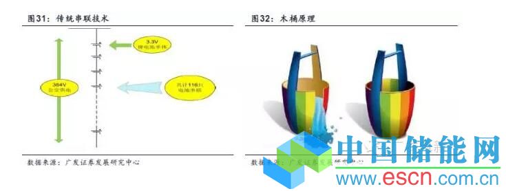傳統(tǒng)BMS控制系統(tǒng)輸出的高電壓,是通過多級(jí)電池串聯(lián)而成。如木桶原理一樣,單個(gè)蓄電池組的容量基本上受組內(nèi)容量最小的電池決定。因此需要所有組內(nèi)單體電池的電壓、內(nèi)阻、容量等指標(biāo)越一致越好。同理,電池組組成的電池供電系統(tǒng),也是受最小容量的電池組決定