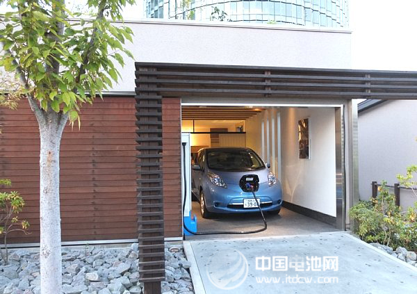 位于橫濱市港未來(lái)地區(qū)的“觀環(huán)居”,是由積水住宅建設(shè)的環(huán)保型住宅,是YSCP的示范地點(diǎn)。在此,日產(chǎn)汽車正在利用該公司生產(chǎn)的EV“聆風(fēng)”進(jìn)行V2H(Vehicle to Home)實(shí)證實(shí)驗(yàn)。通過(guò)快速充電端口、充放電PCS(Power Conditioning System),從分電盤向EV充電,或者由EV向住宅提供電力(照片1)。平時(shí)與系統(tǒng)電力協(xié)調(diào)實(shí)現(xiàn)節(jié)電,停電時(shí)與電力系統(tǒng)斷開(kāi)用作緊急電源。