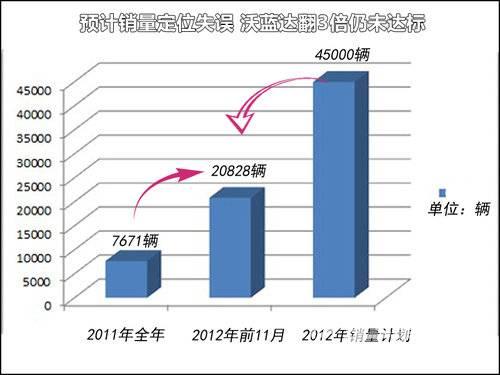 據通用官方統(tǒng)計,美國2012年沃藍達的銷量預計將達23000輛,這個數字達到了2011年的3倍。然而這與當初制定的銷量計劃(45000輛的銷量目標)相比,僅為當初的一半之多,預計銷量定位嚴重失誤。